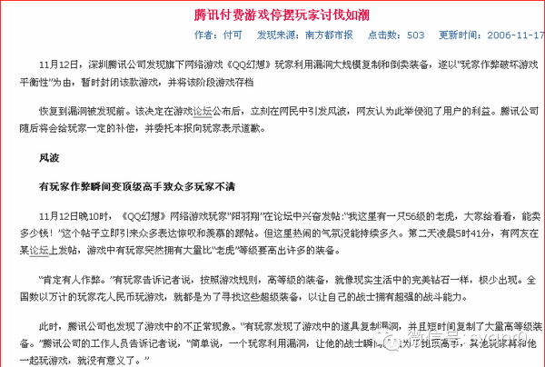 从以上两张图看出,事故对游戏在线人数和收入都有很大的冲击,更糟糕的,与此同时,产生了舆论危机,南方周末用大幅篇章报道了这次负面事件