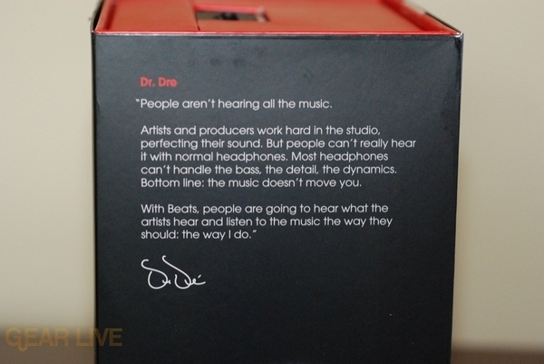 我喜欢耳机。有一次逛数码店,我试听了beat耳机,我不喜欢它的音质,放下耳机我看到包装盒,第一句话就打动了我。Dr.Dre写的,people aren't hearing all the music。全文看图。
