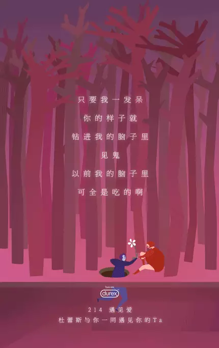 在社交网络上,品牌玩洞察,甚至可以不用扯上产品。杜蕾斯今年情人节的稿子就是这样,我个人非常喜欢。