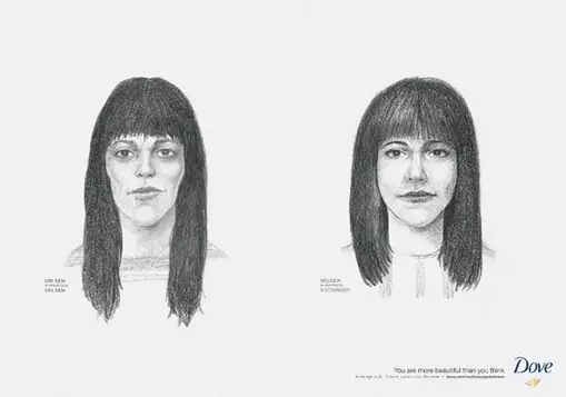 多芬可能是全世界最会洞察女人的品牌。Dove找来美国罪犯肖像艺术家Gil Zamora,在完全看不见彼此的隔离状态下,找来7位女性描述自己外形,Gil根据描述画出画像A。之后,找来7个陌生人,也来描述这7位女性,画出画像B。