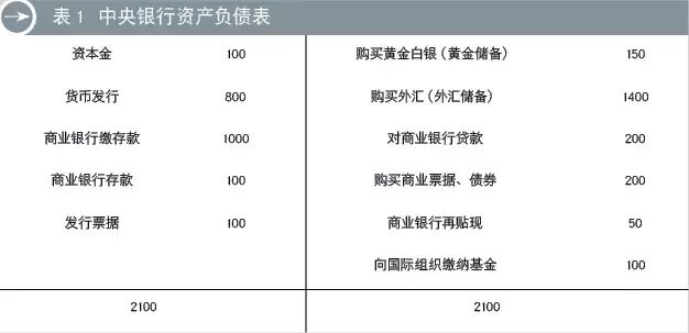 先来看一下假设的中央银行资产负债状况(见表1)。