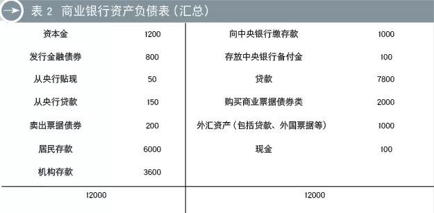 而在同一时间,所有商业银行的资产负债状况汇总假设如表2。