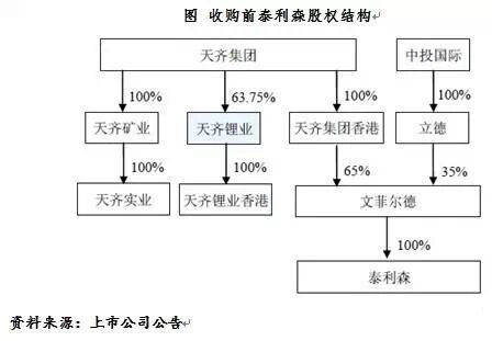 文菲尔德为专为收购泰利森设置的持股公司,上市公司收购前文菲尔德的股权结构为天齐集团香港持股65%、中投国际子公司立德公司持股35%。