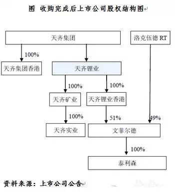 (1)天齐锂业控股股东天齐集团通过子公司天齐集团香港收购文菲尔德的65%股权