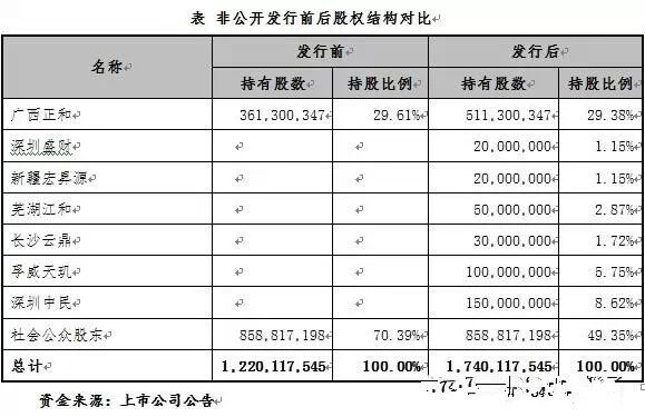 上市公司通过非公开发行募集资金31.29亿元,发行股数11,176万股,发行对象包括汇添富、南方、富国等基金公司和国华人寿等其他金融机构。
