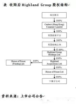 案例三 南京新百收购HighlandGroup(持有英国商场House of Fraser100%股权)