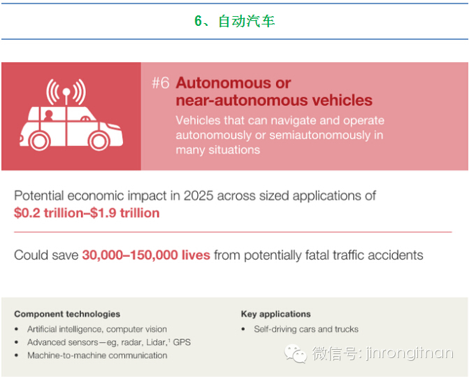 不过麦肯锡的报告中令人感兴趣的预测是,一些比较性感的新潮技术,如无人驾驶汽车、3D 打印、可再生能源等的经济影响相对较低。