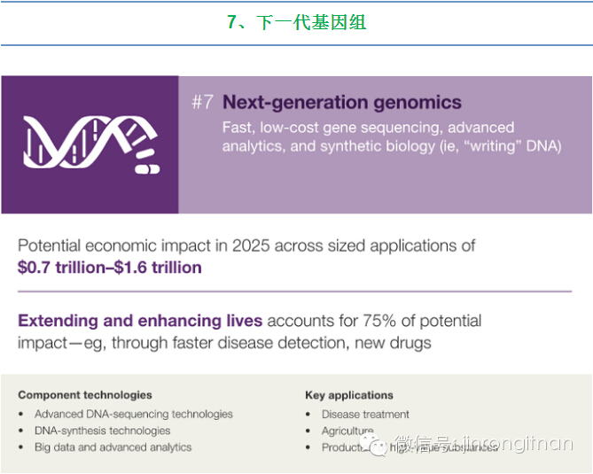 麦肯锡发布了一项报告,里面研究了技术对未来经济影响程度。研究的对象是一些正在取得飞速发展、具有宽泛影响,且对经济影响显著的技术。相反,那些过于遥远的,仅能影响 1、2 个行业的,以及 2025 年之前不大可能实用化的技术(如混合动力),或者是虽然即将成熟但不够大众化的技术(如私人太空飞行)等则不在考虑范围内。