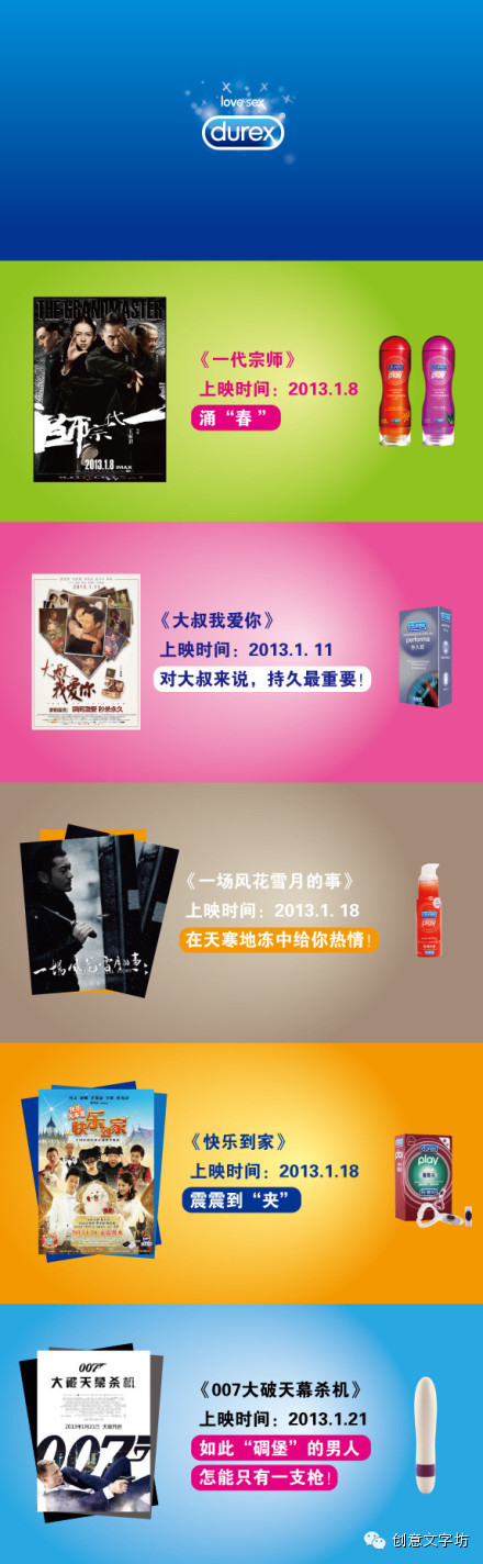 4、2014年,微博上市,杜蕾斯打出如下文案:有杜杜,尽情上!
