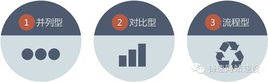 并列组合型 ,它可以是有共同逻辑关系的不同事物,也可以是同一事物的不同方面,在设计的表现上它们之间是一种平等、均衡的状态。而在这些内容的表现形式和结构上也是相对一致的。我们可以结合以下几个图解进行分析。在日常的设计中我们也可以套用以下的几个图示来表达相近的逻辑关系。